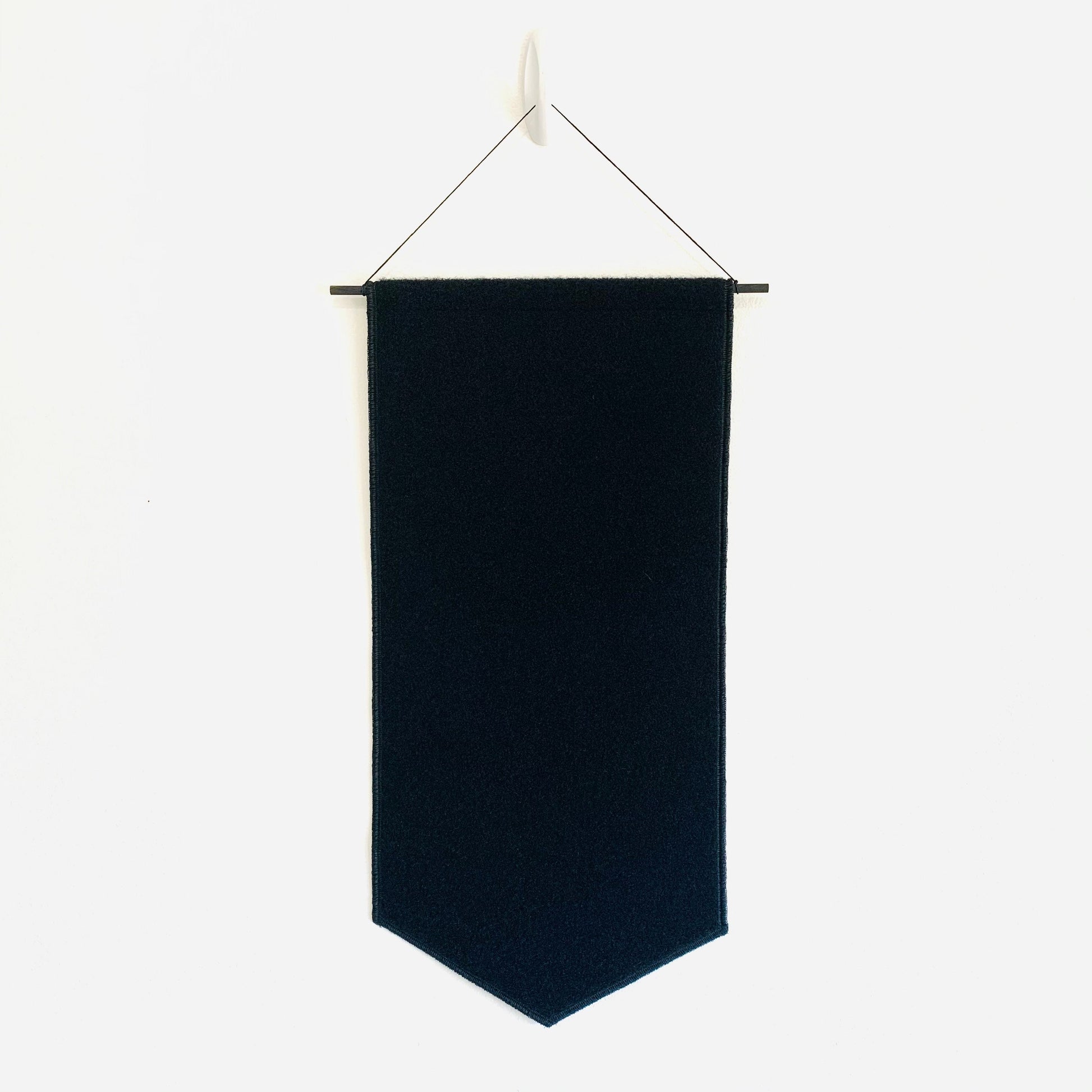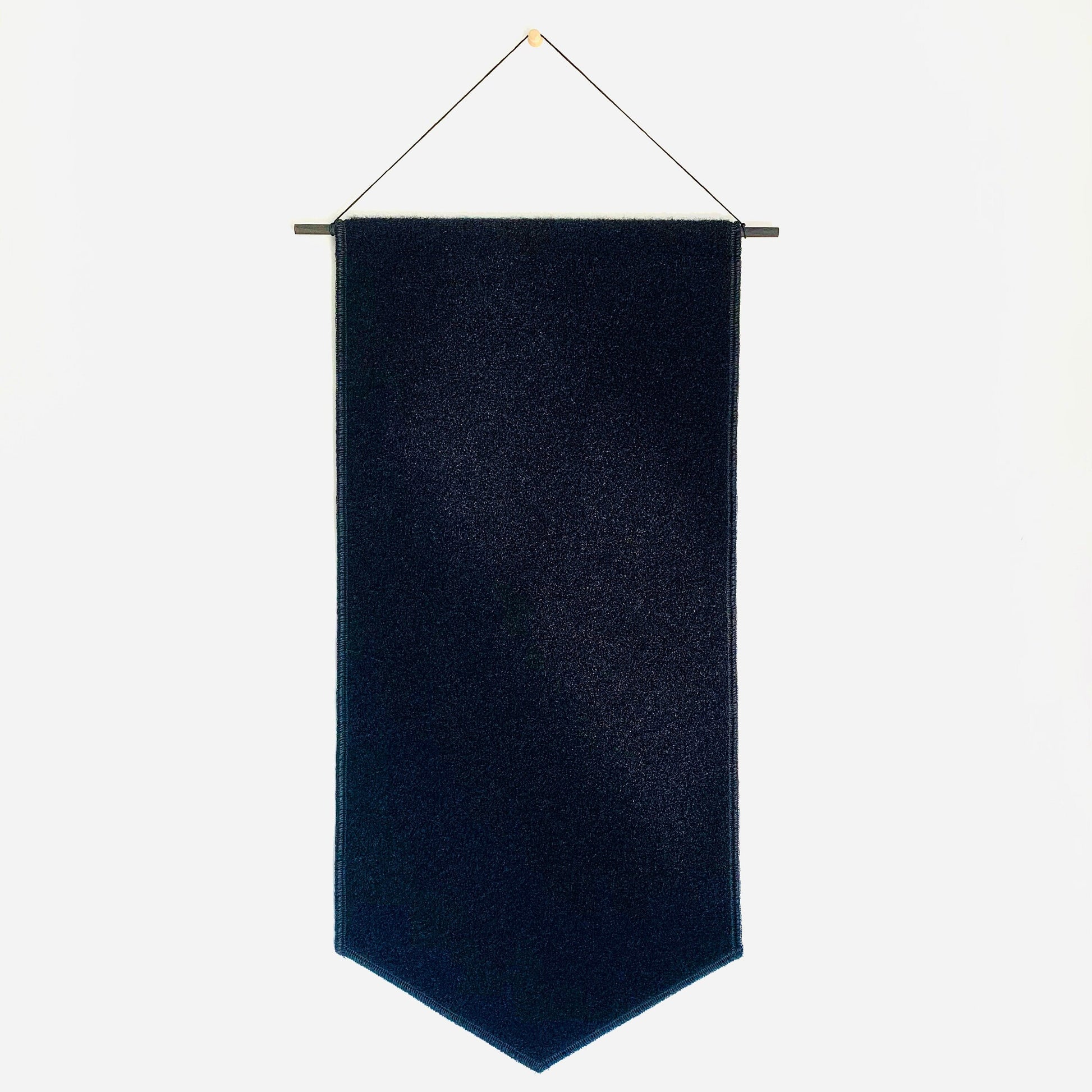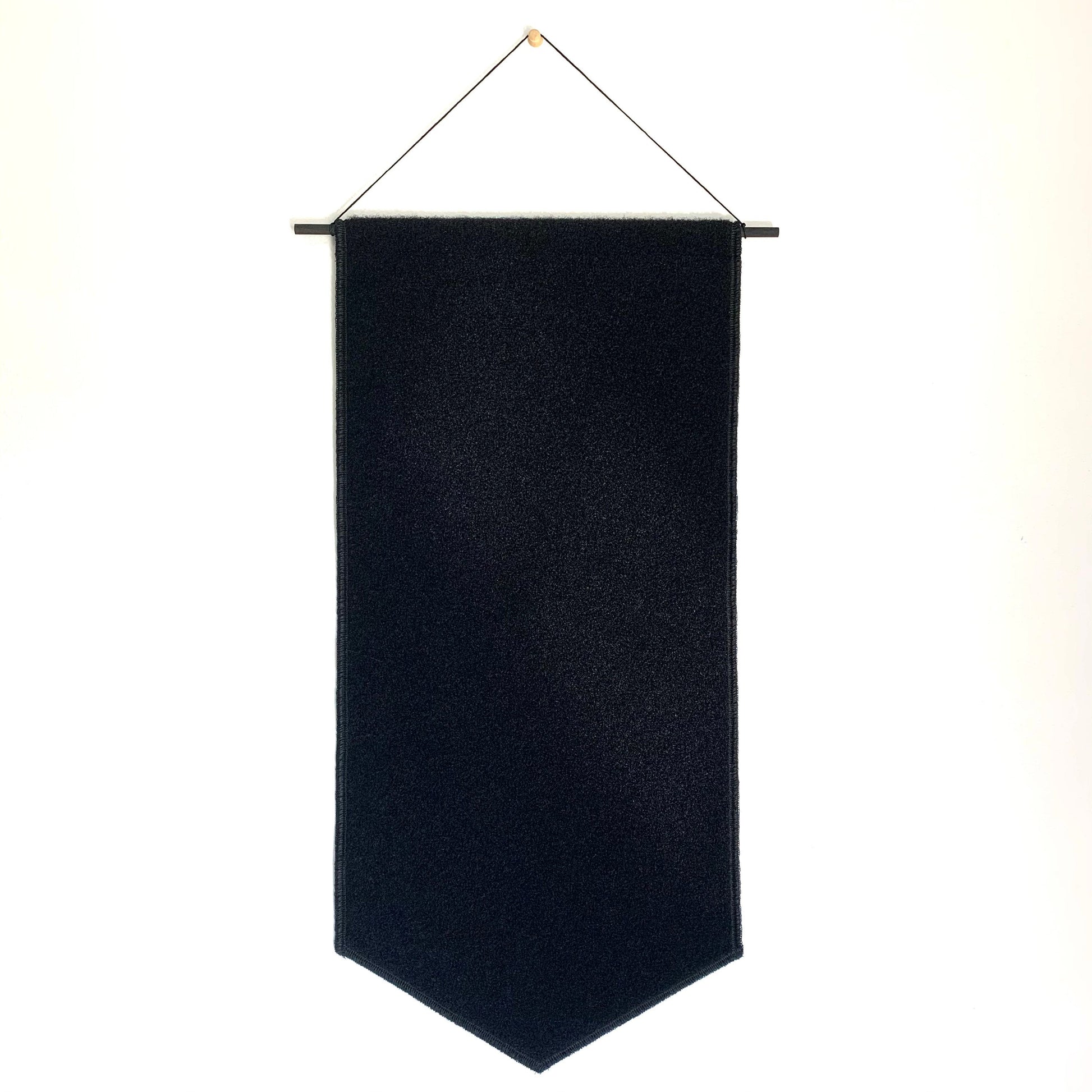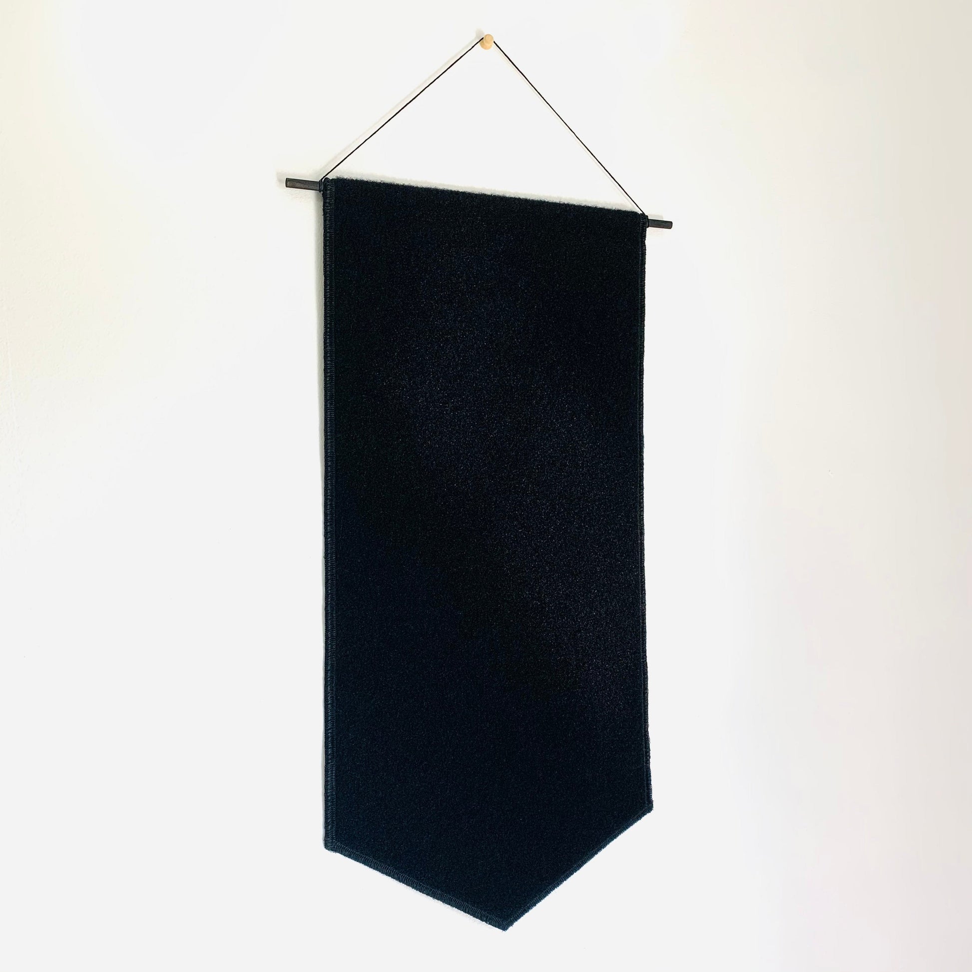 The wall hangings are made of black loop fabric which has been serged so it will not fray. Includes a 12” dowel rod and twine for easy hanging.