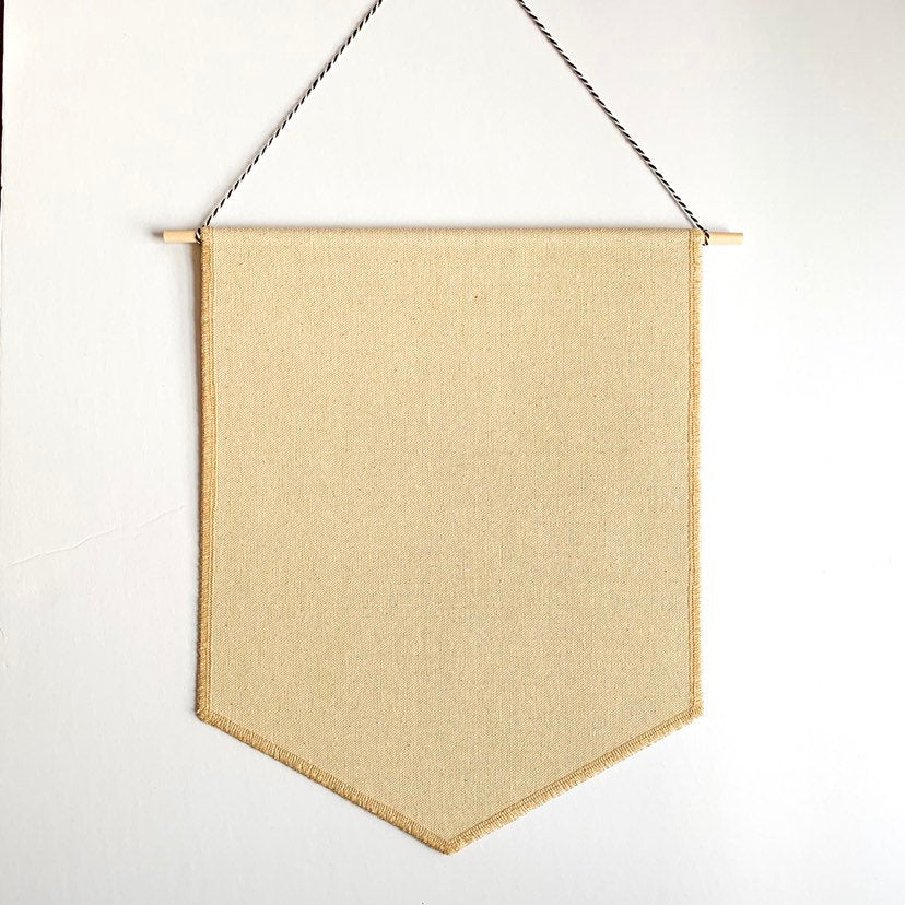 Premium banners are great for large/heavy pins. This banner will always lay flat and will hold the heaviest pins upright. It measures 10”X 12” with a 12” dowel and hanging twine included.