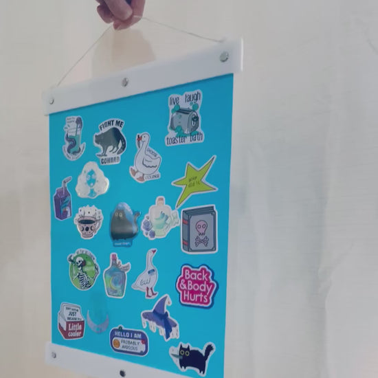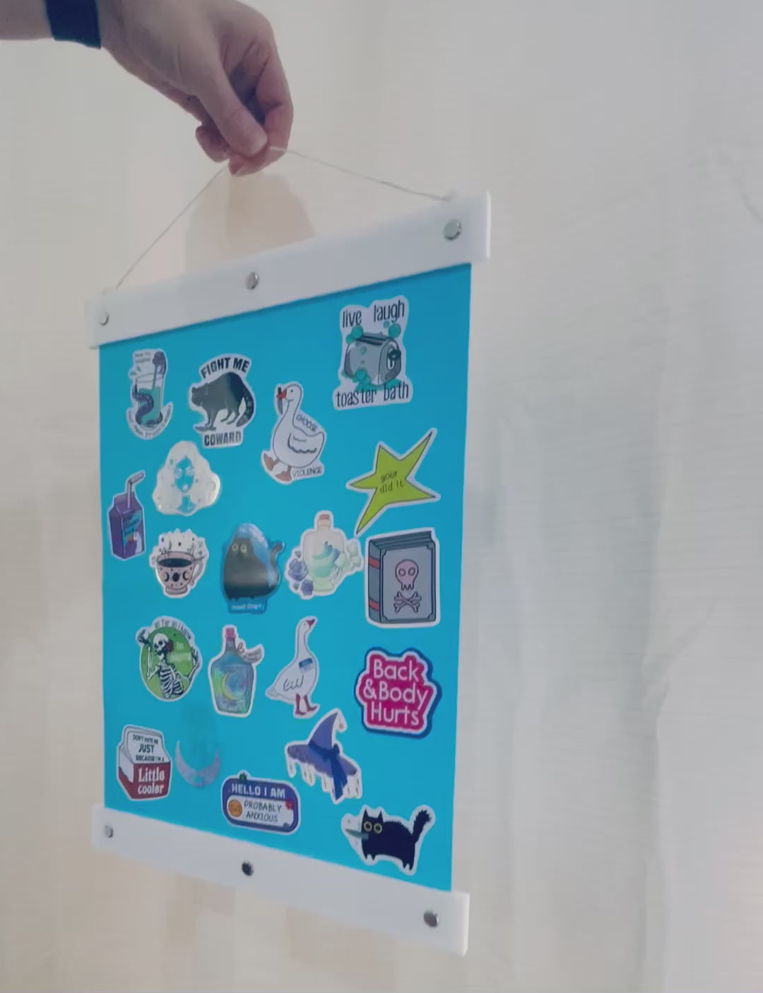 This sticker display makes it easy to show off your collection, and also lets you reposition them as needed!
